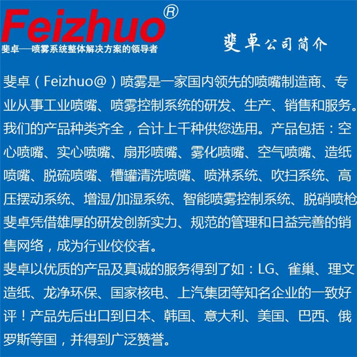 脫硝噴槍結(jié)構(gòu)類型,上海斐卓噴霧系統(tǒng)公司是中國脫硝噴槍生產(chǎn)基地;公司專業(yè)研發(fā)生產(chǎn)脫硝噴槍及泵站系統(tǒng);有多種類型的脫硝噴槍廣泛的應(yīng)用于各種工況,能夠?qū)I(yè)研發(fā)和定制脫硝噴槍產(chǎn)品及系統(tǒng);是脫硫脫硝領(lǐng)域,應(yīng)用廣泛的知名脫硝噴槍品牌!
